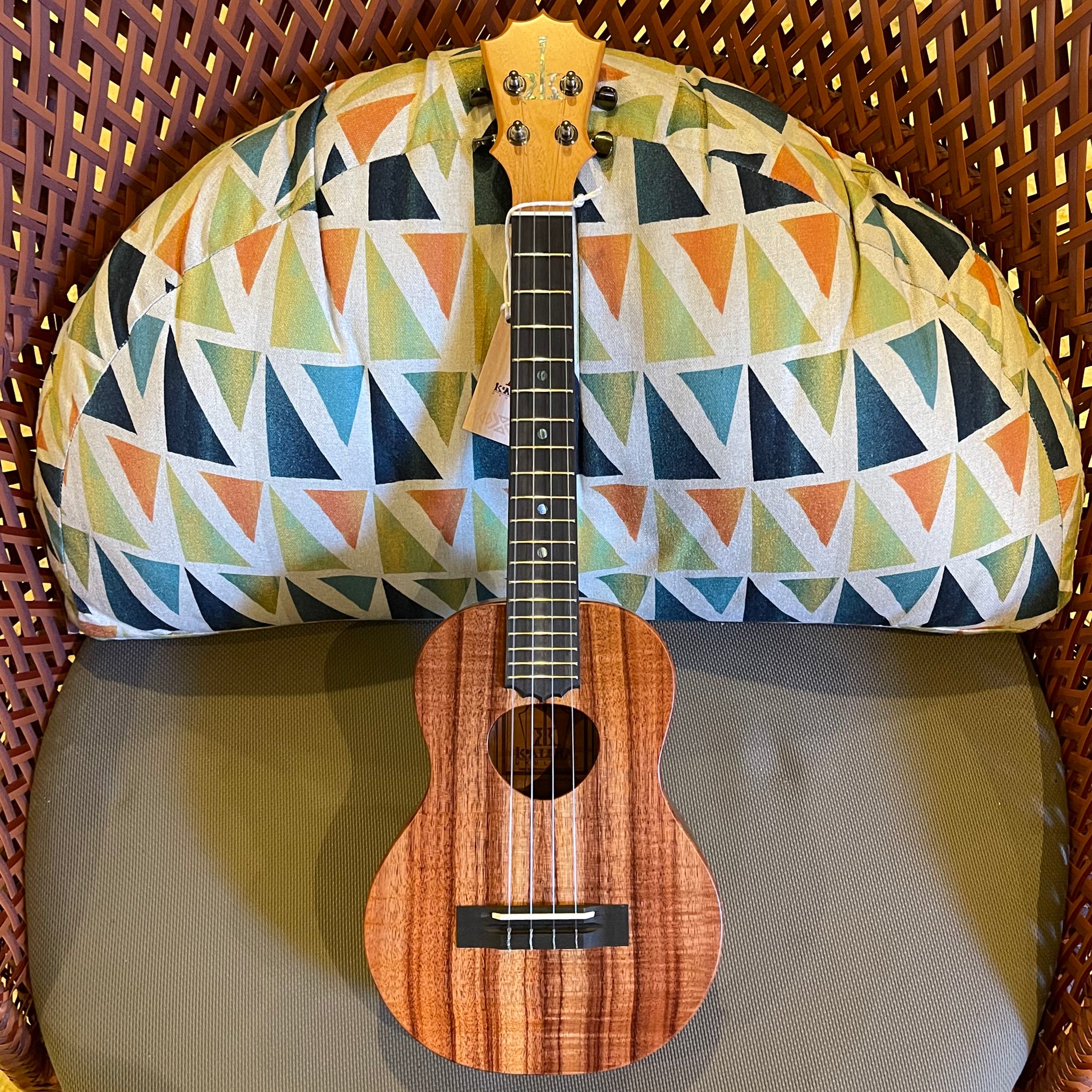 KoAloha KTM-10 コア・テナー・ウクレレは、ハワイアン・コア材のソリッドボディにサテン仕上げを施したテナー・ウクレレです。KoAlohaの特徴である5ポイント・クラウンシェイプのヘッドストックと、結び型のサウンドホールが特徴です。KoAlohaオリジナルのギア付きチューナーを搭載し、非常に軽量でバランスが良く、持ちやすく演奏しやすいのが特徴です。