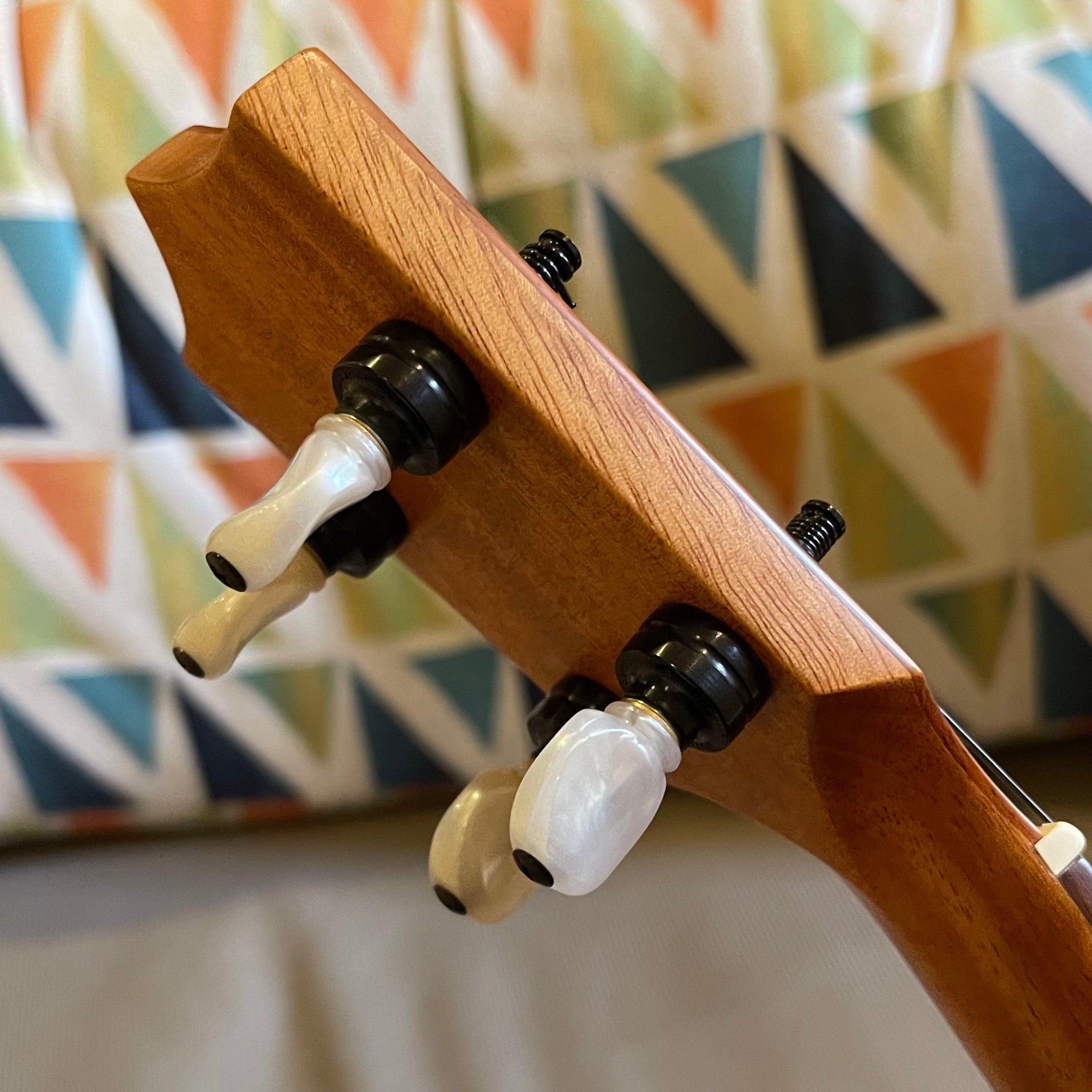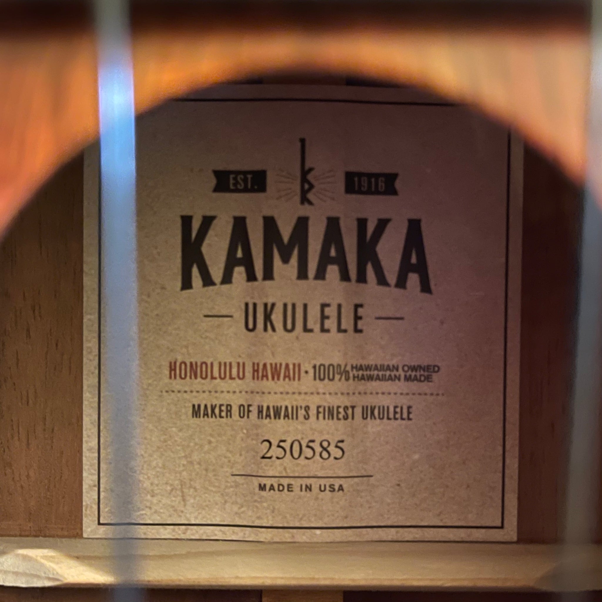 ・コアのヘッドプレートに真珠貝のインレイでカマカのロゴ